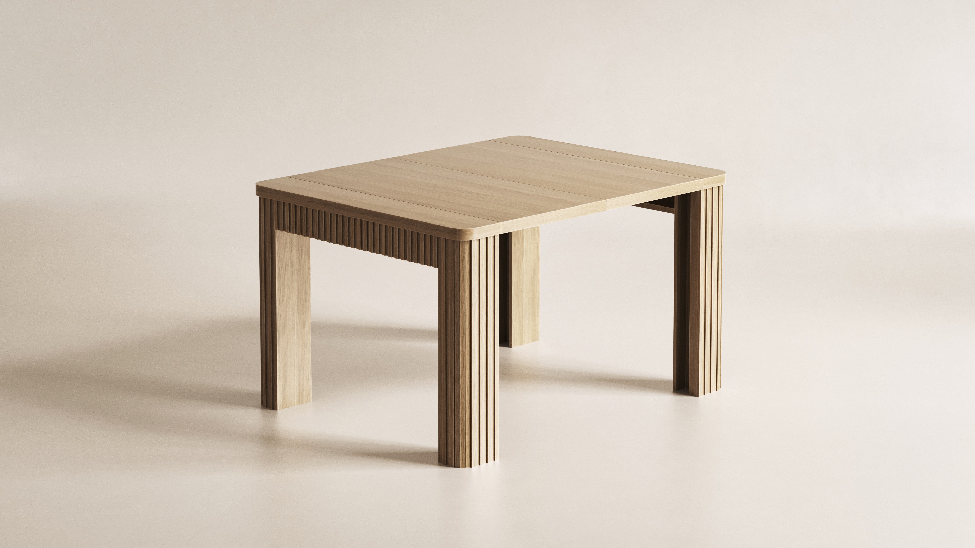 Coco Slim changes with your day. It starts compact so you can use it as a side table, workspace, or console. Need more room? Add up to three hidden extension leaves to host friends or spread out for household project, no tools or effort required.